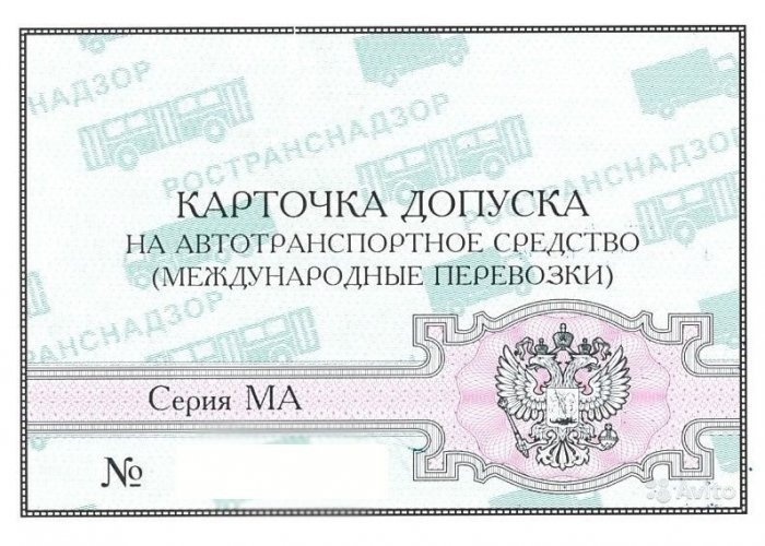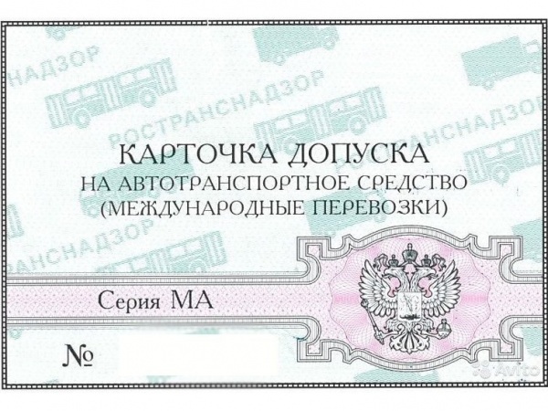 Карточка допуска на транспортное средство для осуществления Международных автомобильных перевозок (МАП). Разг. - Карта МАП.