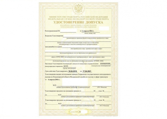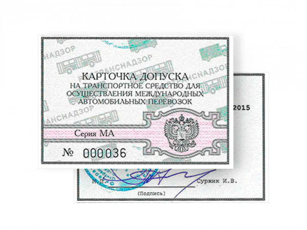 Вместе с удостоверением выдается карточка допуска МАП (карточка выдается на каждое транспортное средство).